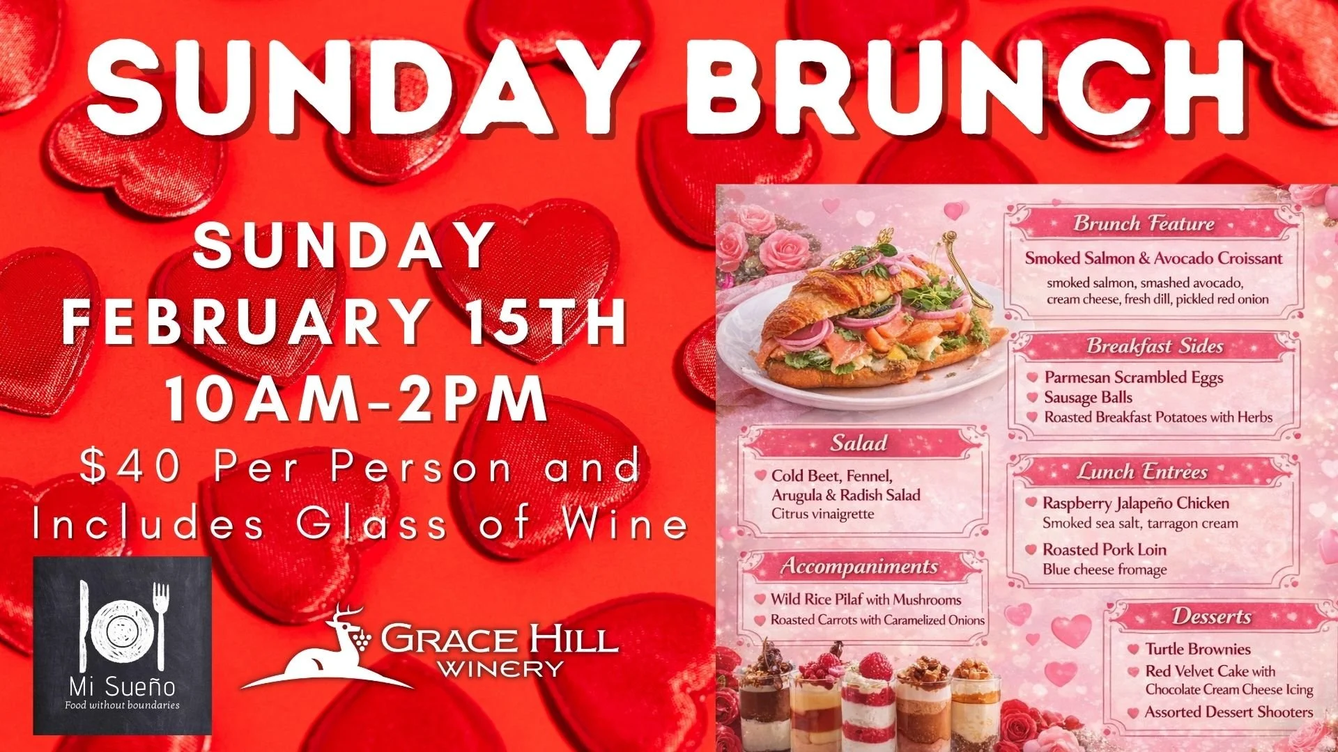 🍷 Each course is paired with your choice of sweet or dry Grace Hill wine.